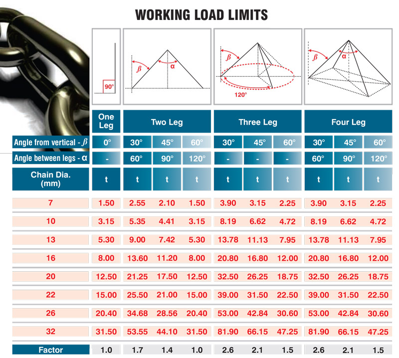 • Although chain will show little or no stretch at rated capacity, it does have the ability to elongate up to 20% prior to failure. This elongation serves as a visual warning sign prompting users to remove the sling from service before injury or damage is sustained from a broken chain sling.